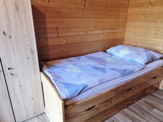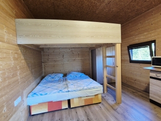 el. přípojka, lednice, lůžkoviny včetně povlečení, zahradní nábytek, možnost parkování u chatky